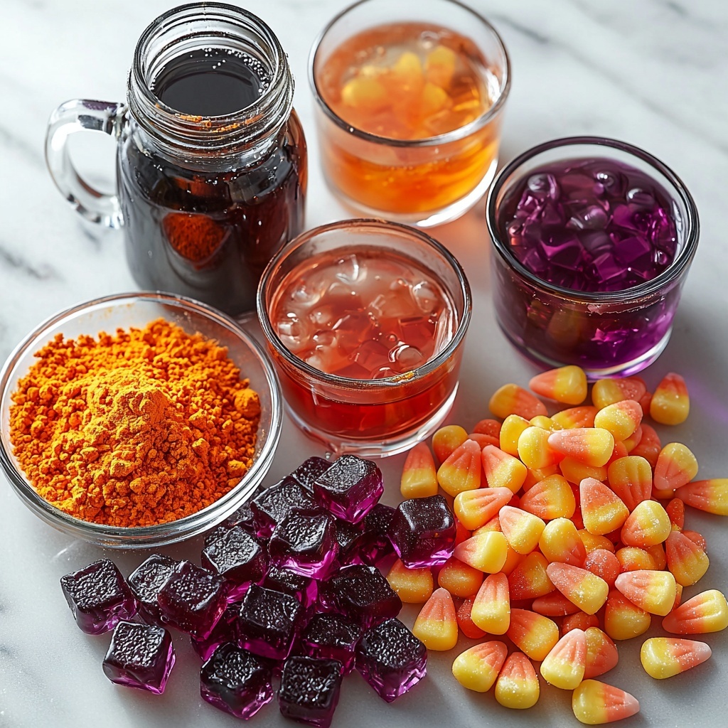 - 1 cup candy corn: Instantly transforms these shots with iconic Halloween flair and a sweet crunch.