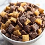 If you want to make a bigger batch ahead of time, simply freeze the puppy chow in a sealed bag or container for up to a month. When you’re ready, thaw it at room temperature for a short while before snacking to bring back that perfect crunch.
