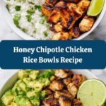 This Honey Chipotle Chicken Rice Bowls recipe features juicy grilled chicken breasts marinated in a smoky, sweet chipotle and honey sauce, served over fluffy rice and topped with a vibrant avocado corn salsa. Garnished with crumbled queso fresco and fresh lime wedges, this dish delivers a perfect balance of smoky spice, sweetness, and refreshing zest, making it a flavorful and satisfying meal for any occasion.
