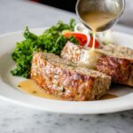 - Rest and Serve: Once cooked, remove the meatloaf from the oven and allow it to rest for 10 minutes before slicing. Serve slices topped with the warm buttery chicken stock sauce.