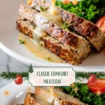 A sprinkle of fresh parsley or a few thyme sprigs on top adds an inviting burst of green that makes your meatloaf look as good as it tastes. A drizzle of pan juices over each serving adds shine and extra flavor.