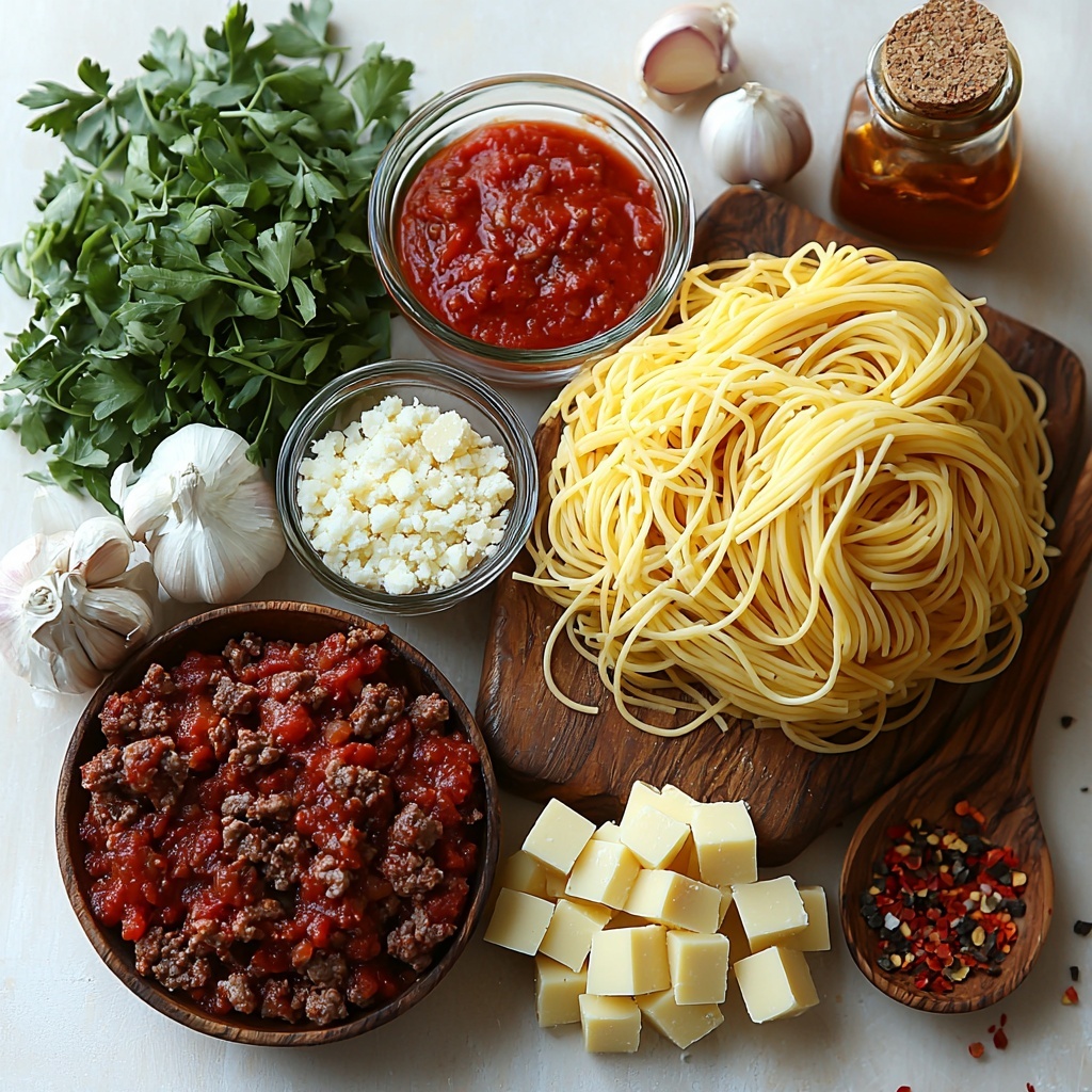 The beauty of this Indulgent Creamy Velveeta Spaghetti with Italian Beef Marinara Recipe lies in its simple, essential ingredients, each chosen to bring distinct flavor, texture, and color to the dish. From the sturdy spaghetti noodles to the rich Velveeta cheese that softens into a smooth sauce, every component plays a key role in building this memorable meal.