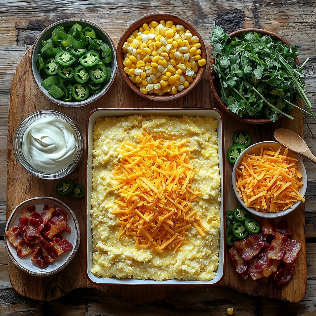 These ingredients are straightforward, yet each plays a crucial role in building the creamy, comforting, and flavorful profile of this casserole. From the sweet crunch of corn to the velvety smoothness of sour cream and the buttery richness that ties everything together, here’s what you’ll gather for this feast: