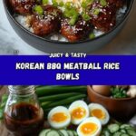 These Irresistibly Juicy Korean BBQ Meatball Rice Bowls combine flavorful meatballs glazed in a savory Korean BBQ sauce, served over a bed of warm rice and fresh crunchy vegetables. Topped with soft-boiled eggs and garnished with sesame seeds and green onions, this recipe offers a delicious and satisfying meal inspired by Korean flavors.