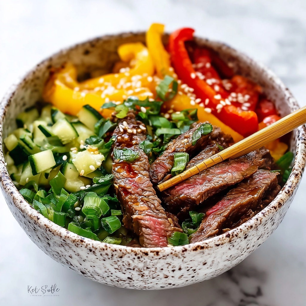 Try serving the steak bowls in pretty ceramic or bamboo bowls to bring a rustic yet elegant vibe. You could also offer the components separately for a build-your-own experience—letting everyone customize with their preferred veggie ratios and dressing amounts makes for a fun, interactive meal.