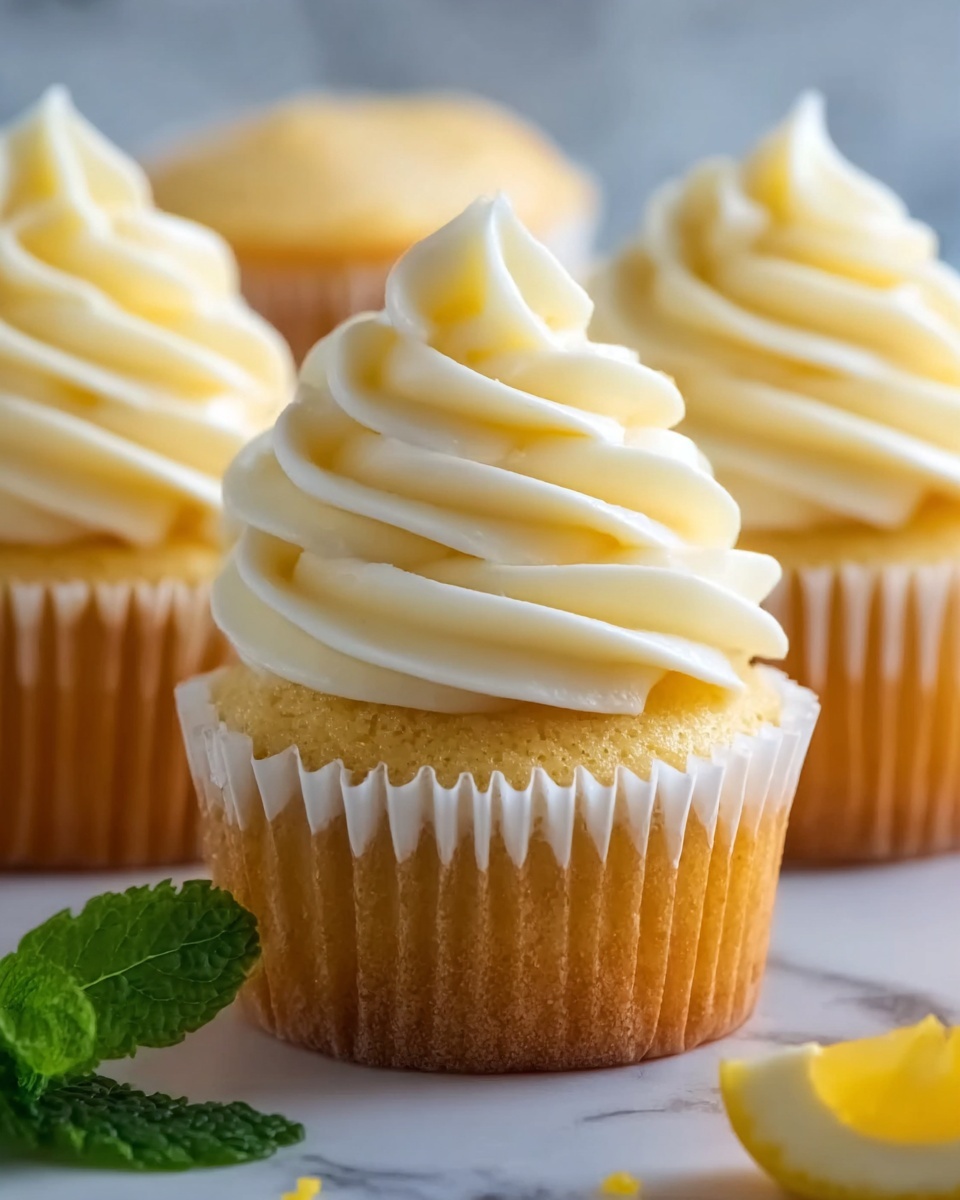 Brighten the cupcakes with extra lemon zest, small edible flowers, or a tiny mint leaf for a fresh and inviting presentation. These little touches not only add visual appeal but hint at the flavors inside.