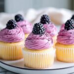 - Frost cupcakes: Once the cupcakes have completely cooled, generously frost them with the blackberry frosting. Garnish with whole blackberries on top if desired for an elegant finish.