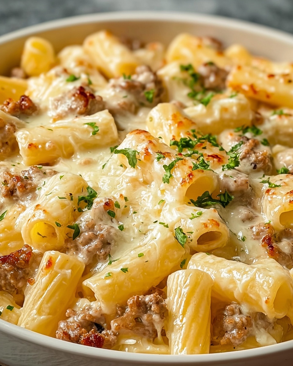 The Loaded Cheeseburger Alfredo Pasta Recipe is an indulgent fusion that combines the best of two beloved classics: the hearty, savory flavors of a cheeseburger and the rich, velvety comfort of Alfredo pasta. Imagine tender penne enveloped in a creamy cheese sauce loaded with juicy ground beef, crispy bacon, and just the right touch of tangy pickles. This dish is irresistibly comforting and surprisingly easy to make, perfect for those nights when you want something satisfying yet simple. Trust me, once you try this Loaded Cheeseburger Alfredo Pasta Recipe, it will quickly become your go-to comfort food that delights both pasta lovers and burger fans alike.