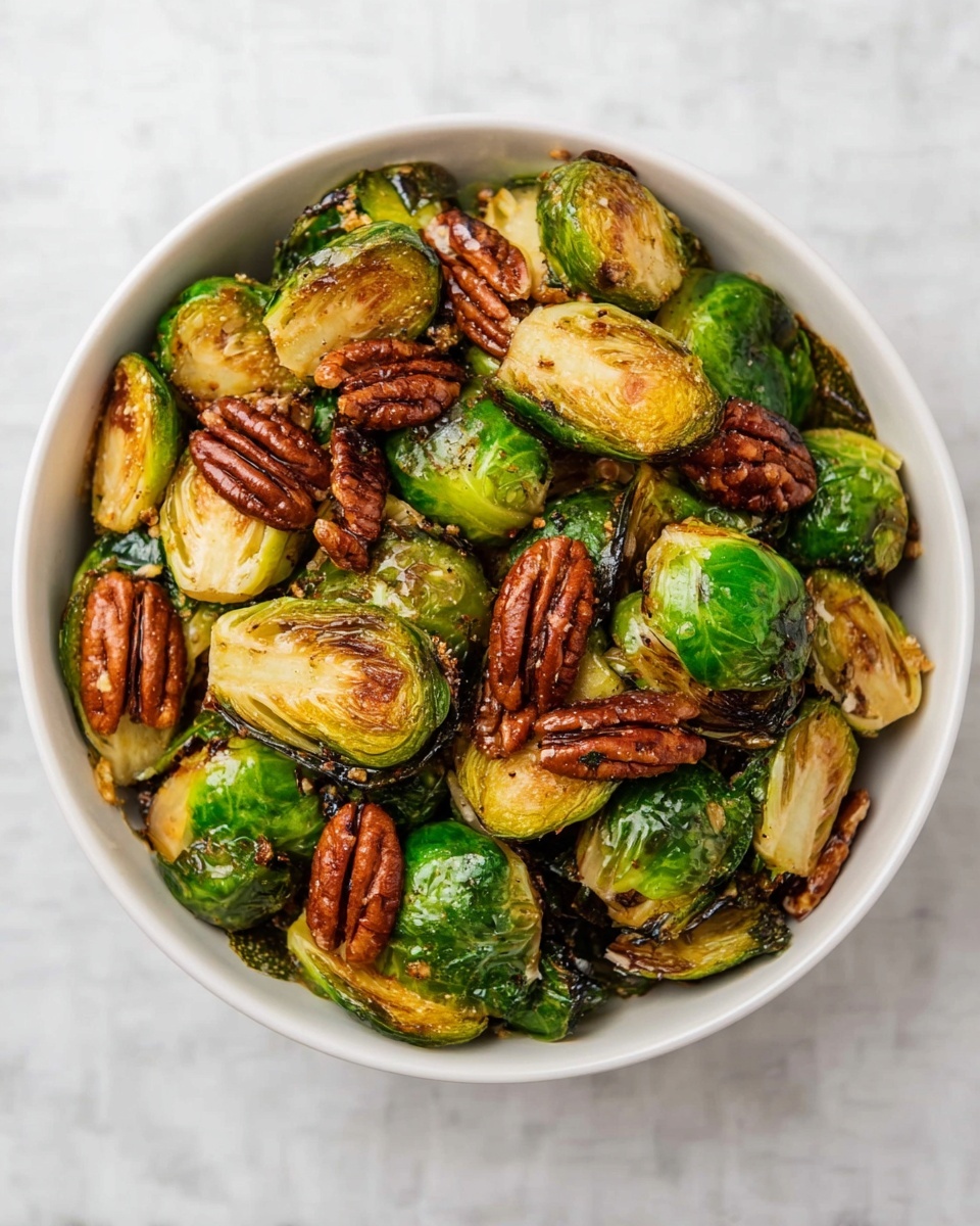Consider serving these sprouts in small rustic bowls for a family-style dinner or as part of a festive holiday spread. You could also toss the finished sprouts into a grain bowl with some crumbled goat cheese and dried cranberries for a vibrant, seasonal salad. For entertaining, arrange the sprouts on a platter garnished with extra pecans and fresh herbs to create a stunning, shareable appetizer.