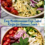 This Mediterranean Orzo Salad Recipe includes feta cheese, which is not vegan. However, you can make it vegan by omitting the feta or using a plant-based cheese alternative. The salad remains fresh and flavorful either way.