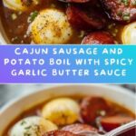 Start by filling a large stockpot with salted water and adding bay leaves; this will be the flavorful bath for your potatoes, sausage, and corn. As it heats to a rolling boil, move to your saucepan and gently melt the unsalted butter — it’s the luscious base that will carry all the spices. Stir in finely minced garlic and the grated yellow onion until fragrant, about one to two minutes, before adding your blend of Cajun seasoning, Old Bay, smoked paprika, cayenne pepper, fresh lemon juice, chicken broth, hot sauce, and brown sugar. Let this simmer for a couple of minutes, allowing the flavors to marry and meld into a rich, spicy butter sauce. Keep this warm for later.