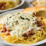 Preheat your oven to 350°F (175°C). Transfer the spaghetti mixture into a large baking dish. Evenly sprinkle the shredded mozzarella cheese and remaining Parmesan cheese over the top. Bake uncovered for about 20 minutes until the cheese is melted, bubbly, and beginning to turn golden brown. Now your Million Dollar Spaghetti Alfredo Recipe is ready to steal the spotlight!