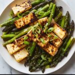 This vibrant Miso-Chile Asparagus with Tofu recipe combines tender asparagus and crispy firm tofu tossed in a flavorful miso-chile glaze. Quick and easy to prepare, this dish features a delightful balance of savory miso, spicy red-pepper flakes, and aromatic sesame oil, making it a perfect healthy vegetarian meal or side dish suited for any weeknight.