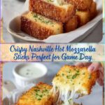 Nashville Hot Mozzarella Sticks are a spicy twist on the classic fried cheese snack. These crispy, breaded sticks are double-coated with a seasoned breadcrumb mixture infused with smoked paprika and cayenne pepper, then deep-fried to golden perfection. After frying, they’re brushed with a flavorful blend of melted butter and hot sauce to give that iconic Nashville heat. Perfect as an appetizer or game day treat, they’re best served with cooling dips like ranch, honey mustard, or marinara sauce.