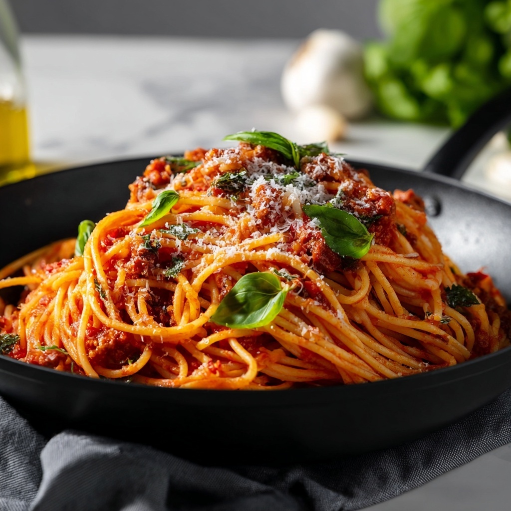 For a family-style feast feel, serve the spaghetti straight from the pot into rustic bowls and encourage everyone to help themselves. Alternatively, you could plate portions elegantly, twirling the pasta into neat nests for a dinner party presentation. A sprinkle of shaved Parmesan and a sprig of basil on top always makes for a pretty, appetizing touch.
