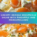 Orange Dreamsicle Salad is a light, refreshing no-bake dessert salad combining creamy vanilla pudding, sweet mandarin oranges, juicy crushed pineapple, fluffy marshmallows, and whipped topping. Perfectly chilled, it offers a delightful balance of fruity and creamy flavors, reminiscent of the classic dreamsicle treat.