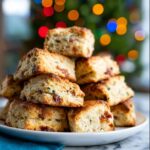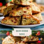 These Overnight Bacon and White Cheddar Scones combine crispy applewood smoked bacon with sharp white cheddar and fresh chives for a savory, flaky treat. Made ahead and frozen, they offer a convenient, crowd-pleasing breakfast or snack option with rich buttery texture and a slight sweetness, balanced by smoky bacon and tangy cheese.