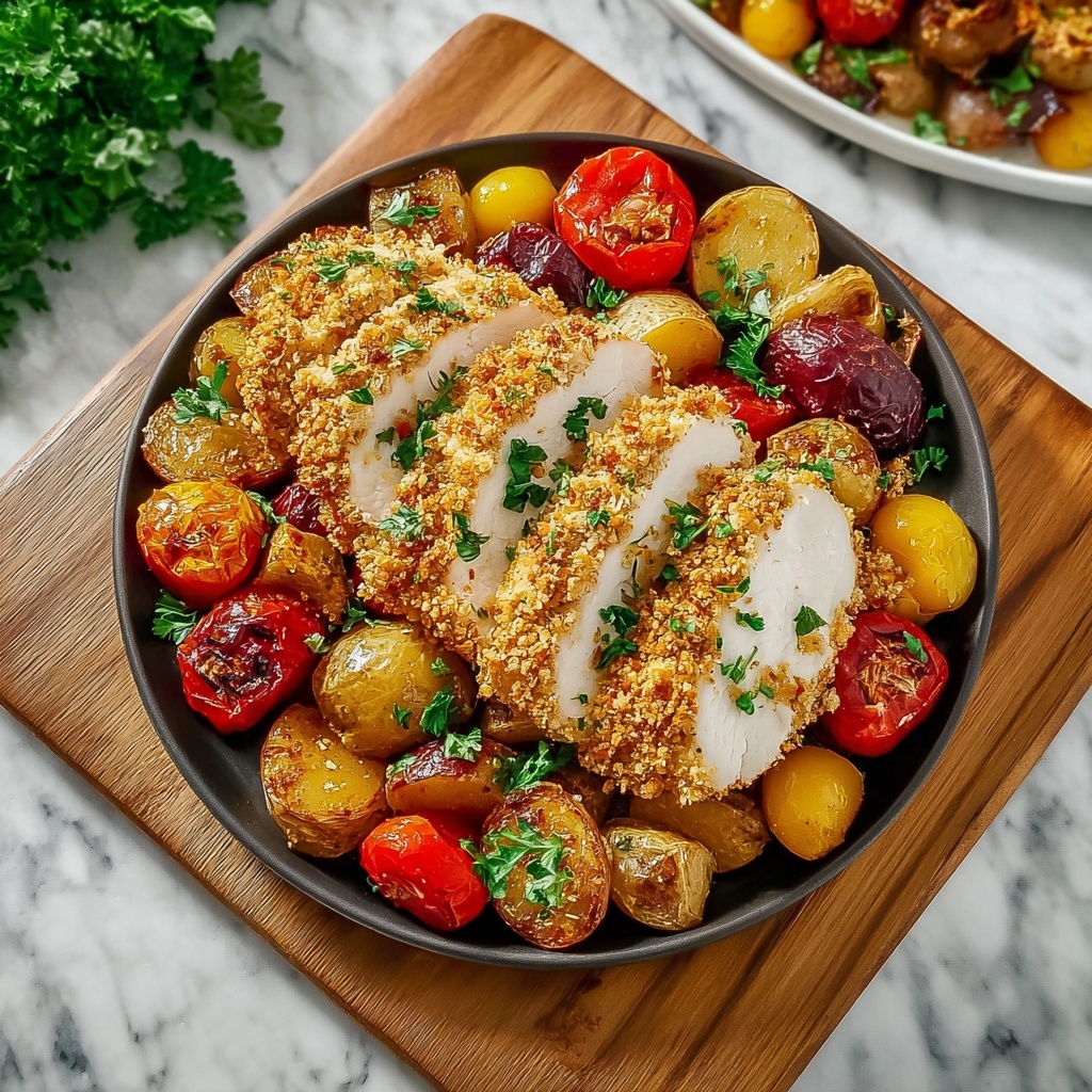 This Parmesan Crusted Chicken Sheet Pan recipe offers a simple yet flavorful one-pan dinner featuring juicy chicken breasts with a crispy Parmesan and breadcrumb crust, roasted baby potatoes, and tender broccoli. It’s an easy, balanced meal perfect for busy weeknights that combines protein, vegetables, and comforting roasted potatoes all baked together for fuss-free cooking and cleanup.