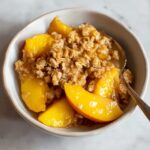- Assemble Crisp: Evenly crumble the oat topping over the peach filling, ensuring the peaches are fully covered.