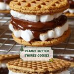 Delight in these Peanut Butter S’mores Sandwich Cookies that combine soft, chewy peanut butter cookie bases with melted chocolate chips and gooey mini marshmallows, creating a nostalgic campfire treat transformed into an irresistible sandwich cookie.