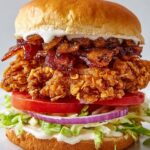 Start with the bottom bun, add a layer of fresh lettuce, then your crispy fried chicken, followed by juicy tomato slices and a generous spread of mayonnaise on the top bun. This layering technique ensures each bite is perfectly balanced.