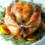 This Perfect Juicy Roast Turkey recipe guides you through roasting a whole 12-14 pound turkey to tender, flavorful perfection. Infused with classic herbs like thyme, rosemary, garlic, and onion powder, and basted with butter, this roast turkey boasts a crisp skin and juicy interior, ideal for festive occasions and holiday dinners.