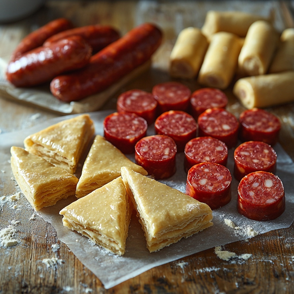 - Arrange for Baking: Place the wrapped sausages seam-side down on a parchment paper-lined baking sheet, ensuring there is at least 1 inch of space between each to allow even baking.