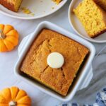 Wrap any leftover pumpkin cornbread tightly in plastic wrap or store it in an airtight container to keep it moist and fresh. It will last for about 3 to 4 days on the countertop or up to a week if refrigerated.