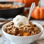 This Pumpkin Crisp is a delightful autumn dessert featuring a spiced pumpkin filling topped with a crunchy oat and pecan crumble. Baked to golden perfection, it’s a comforting treat perfect for cozy evenings or holiday gatherings.