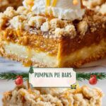 Deliciously rich Pumpkin Pie Bars featuring a buttery shortbread crust, a smooth spiced pumpkin filling, and a crunchy walnut streusel topping. Perfect for fall gatherings or any time you crave a festive, comforting dessert in bar form.