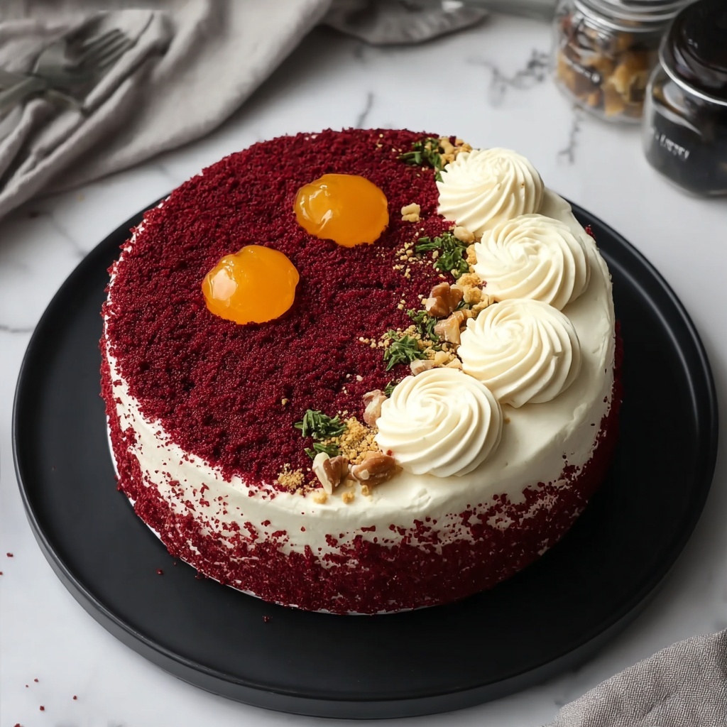 Bring your Red Velvet Cake with Cream Cheese Frosting Recipe to the table. Revel in the moist, velvety layers paired with the sweet and tangy frosting—a real treat for your taste buds!
