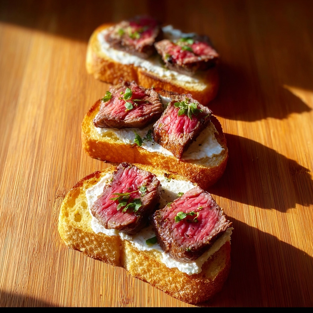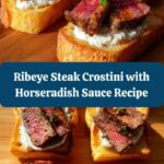 This Ribeye Steak Crostini with Horseradish Sauce is a quick and elegant appetizer featuring tender, medium-rare ribeye steak slices atop crispy toasted baguette slices, complemented by a zesty horseradish sauce. Perfect for entertaining or a sophisticated snack.