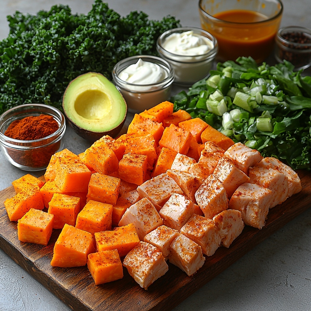 These ingredients might seem straightforward, but they’re the magic behind the robust flavors and textures in this Roasted Chicken, Sweet Potato, and Kale Bowls Recipe. From the spice blend that gives the chicken its kick, to the creamy sauce that ties everything together, every item plays a crucial role in creating that perfect harmony.