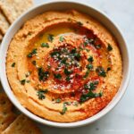This Roasted Red Pepper Hummus is a creamy and flavorful twist on the classic hummus recipe, combining the sweetness of roasted red peppers with the earthiness of chickpeas and tahini. Perfect as a healthy dip or spread, this quick and easy recipe can be ready in just 10 minutes using a food processor.