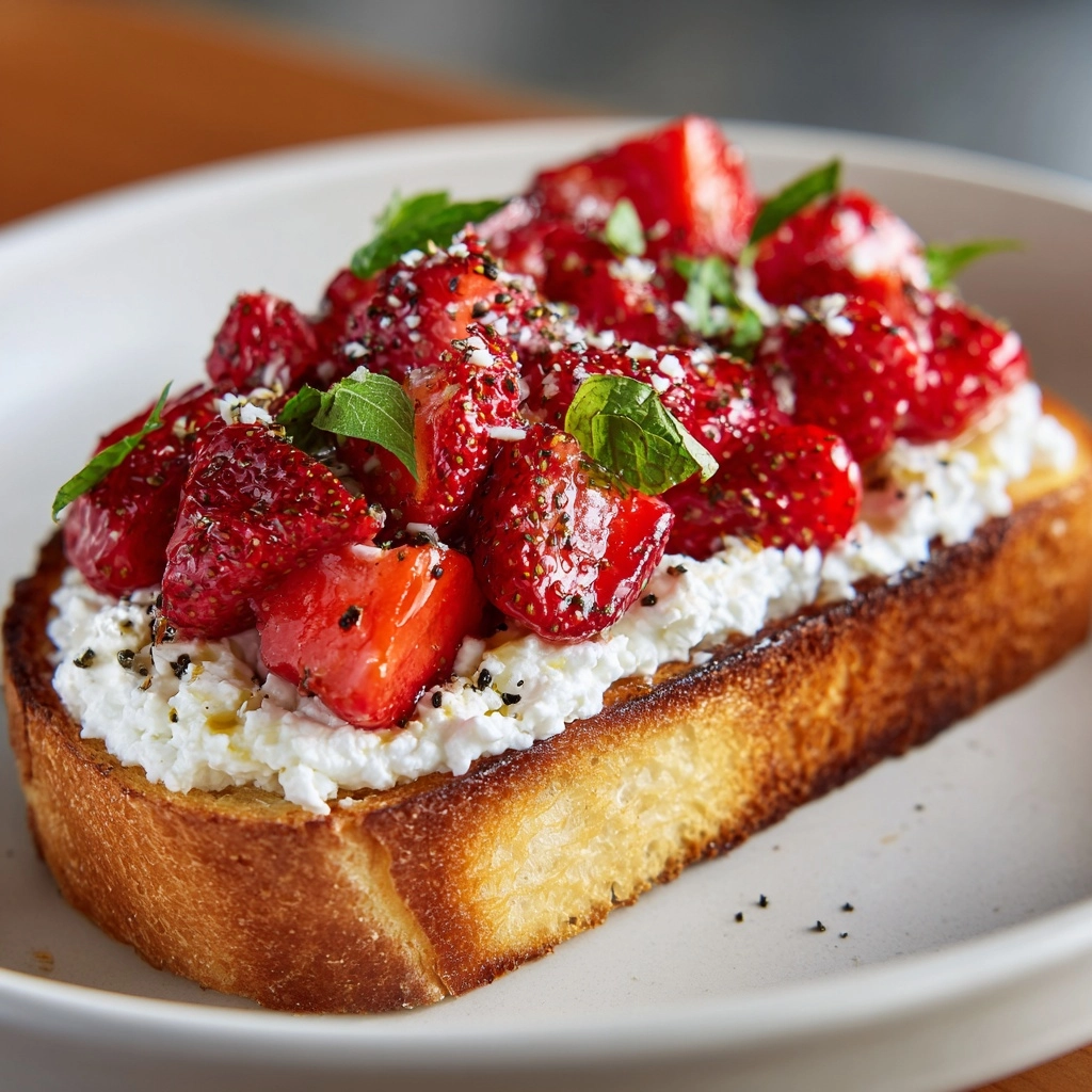 Enhance your Roasted Strawberry Whipped Ricotta Toast Recipe with a sprinkle of finely chopped pistachios or walnuts for delightful crunch and nutty contrast. Fresh mint leaves are not just pretty—they introduce a refreshing herbal note that elevates the entire flavor profile. A light dusting of freshly cracked black pepper can even add an unexpected but delicious depth.