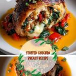 If you’re searching for a dish that’s bursting with flavor, tender but juicy, and irresistibly cheesy, you’ve just found it with this Savory Stuffed Chicken with Roasted Red Peppers, Spinach, and Mozzarella Recipe. Imagine succulent chicken breasts filled with sweet roasted red peppers, fresh spinach, and gooey mozzarella all baked to perfection — it’s a meal that’s as elegant as it is comforting. This recipe brings together vibrant colors, textures that melt in your mouth, and a bouquet of herbs and spices that make every bite unforgettable. Whether you’re cooking for a cozy dinner or entertaining friends, this dish truly shines.
