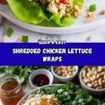 This Shredded Chicken Lettuce Wraps recipe features tender rotisserie chicken tossed in a flavorful peanut-soy sauce, combined with crunchy red bell peppers and topped with peanuts and green onions, all served in crisp butter lettuce leaves for a fresh, light, and satisfying meal.