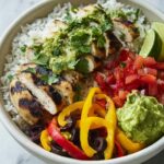 This Simple Grilled Chicken Burrito Bowl is a vibrant, flavorful meal perfect for a quick and healthy dinner. Featuring marinated grilled chicken breast atop a bed of fluffy rice, black beans, fresh vegetables, and creamy avocado, it balances protein, fiber, and wholesome ingredients for a wholesome, satisfying dish bursting with Southwestern flavors.