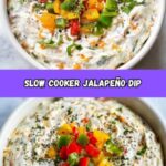 This Slow Cooker Jalapeño Popper Dip is a creamy, cheesy, and spicy appetizer perfect for gatherings and parties. Combining diced bell peppers, jalapeños, bacon, and a blend of cheeses, this dip is cooked slowly to meld the flavors together into a warm, bubbly treat that guests will love.