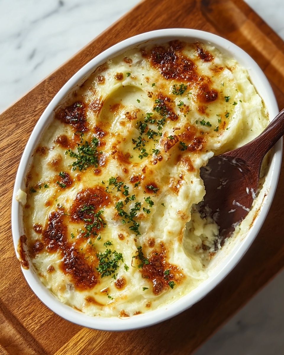 These mashed potatoes are stunning alongside roasted meats like herb-crusted chicken, glazed ham, or a juicy steak. They also pair wonderfully with roasted vegetables or a crisp green salad to balance out their creamy, cheesy indulgence.
