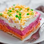 Shuba, also called “Herring Under a Fur Coat,” is a beloved Russian layered salad. Using smoked salmon instead of herring offers a delicious twist while maintaining the spirit of this festive dish.
