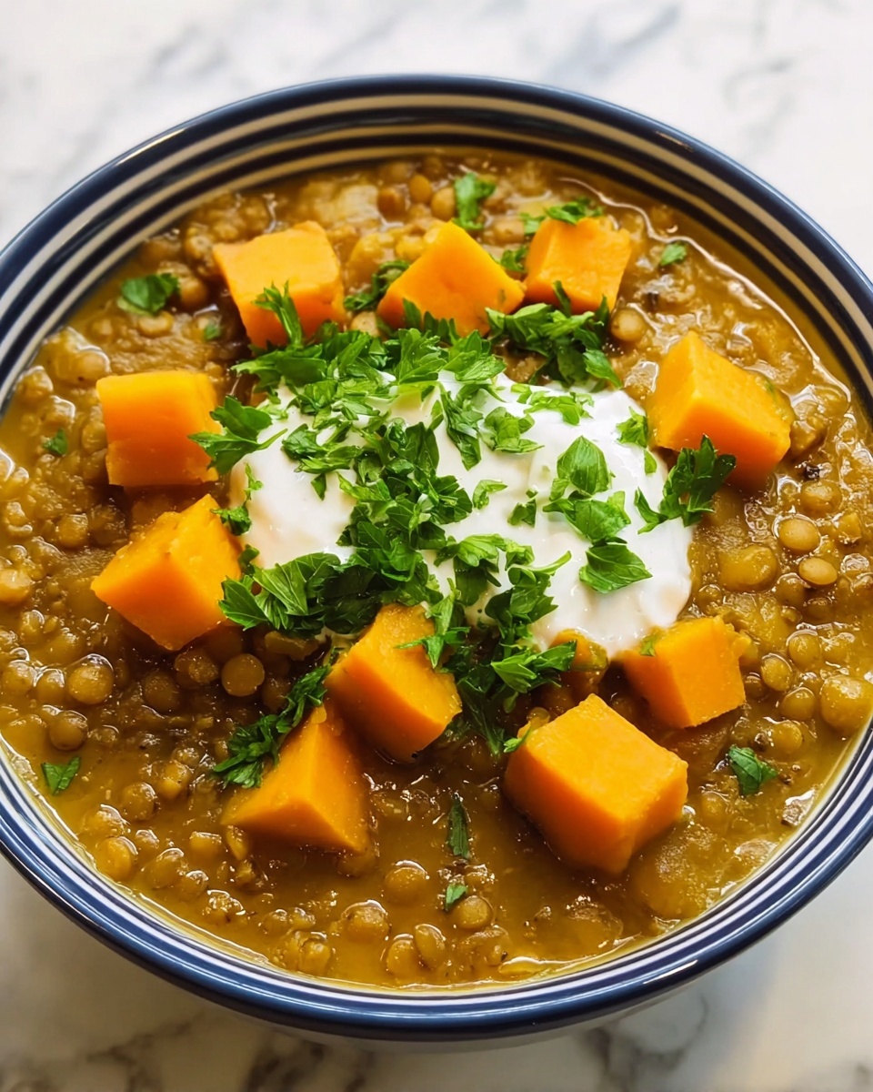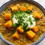 A warming and flavorful Spiced Pumpkin Lentil Soup combining hearty lentils, creamy pumpkin puree, and aromatic spices, simmered to perfection and finished with coconut milk for a rich, comforting bowl perfect for chilly days.