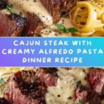 This Spicy Cajun Steak with Creamy Alfredo Pasta recipe combines the bold flavors of Cajun-seasoned ribeye or sirloin steak with a rich and smooth homemade Alfredo sauce tossed with tender fettuccine. Perfectly seared steaks paired with a luscious, garlicky parmesan cream sauce make a decadent and satisfying meal for two.