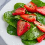 - Prepare the Salad Base: Wash the fresh spinach thoroughly and dry it completely to avoid excess moisture. Place the spinach in a large serving bowl. Slice the strawberries and add them on top of the spinach.