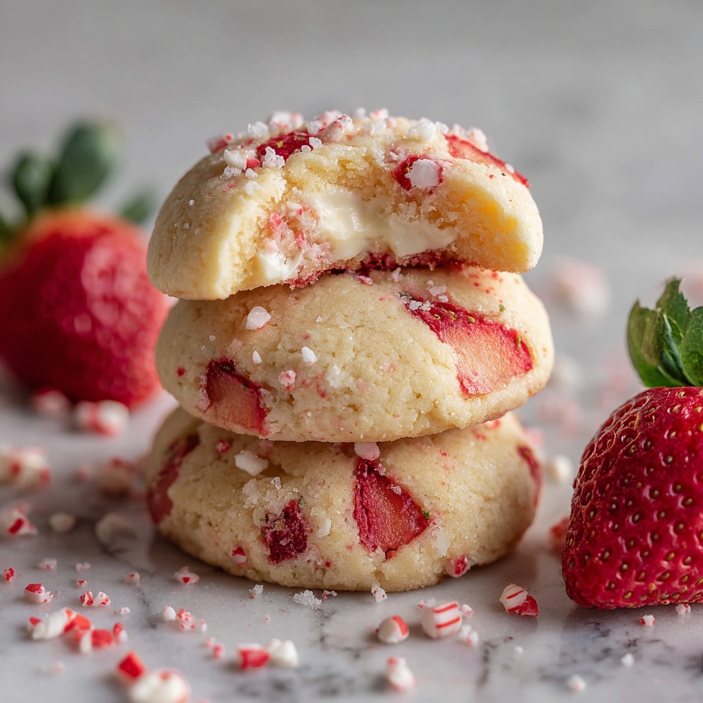 Serve these cookies on a pretty platter layered with fresh strawberry slices or arrange them in a stack tied with a rustic ribbon for gifts. For parties, offer them alongside a selection of other berry-flavored sweets and cheesecake bites to create a delectable strawberry-themed dessert table your guests won’t forget.
