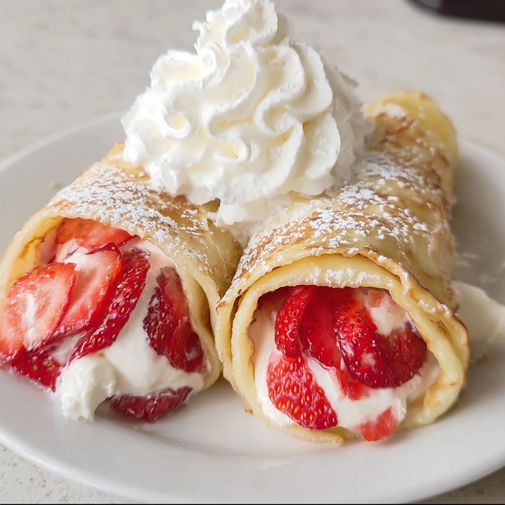 A delightful Strawberry Cream Pancake Roll recipe featuring fluffy pancakes filled with fresh strawberries and whipped cream, perfect for a sweet breakfast or brunch treat. These rolls are easy to make, combining classic pancake ingredients with a luscious cream and berry filling.