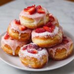 These strawberry donut rolls are fluffy, soft yeast rolls filled with fresh macerated strawberries and topped with a sweet vanilla glaze. They can be fried to golden perfection or baked for a lighter option. Perfect for breakfast or a delightful dessert treat.