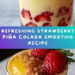 For a fun twist, serve your Strawberry Piña Colada Smoothie Recipe in a hollowed-out pineapple or a mason jar adorned with colorful twine. Adding edible flowers or layering the smoothie with chia seed pudding can create a stunning layered effect that’s as delightful to the eyes as it is to the palate.