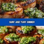 This Surf & Turf with Chimichurri recipe features juicy ribeye steaks paired with succulent shrimp cooked in garlic butter and smoked paprika. Served with a vibrant, homemade chimichurri sauce made from fresh parsley, cilantro, and red wine vinegar, it’s a perfect blend of Argentinian-American flavors that makes an impressive and delicious main course for any special occasion or weeknight dinner.