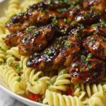 Sweet and Spicy Honey Pepper Chicken served over creamy macaroni and cheese. This comforting dish combines tender chicken breasts cooked in a flavorful honey soy glaze with a peppery kick, paired perfectly with rich, cheesy macaroni. A perfect meal for those who love a balance of sweet, spicy, and savory flavors in one satisfying dinner.